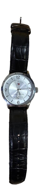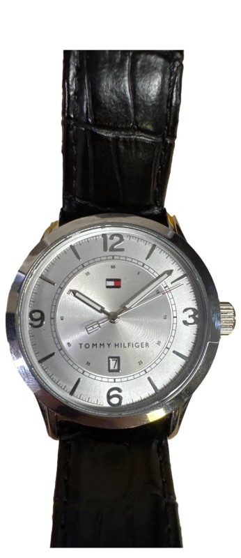 This sleek and sophisticated TOMMY dress watch features a round silver face with a BATON display, encased in durable GLASS. The black leather band complements the stylish design, making it a versatile accessory for any occasion. Crafted with attention to detail, this timepiece offers a refined and polished look that will elevate your everyday style.