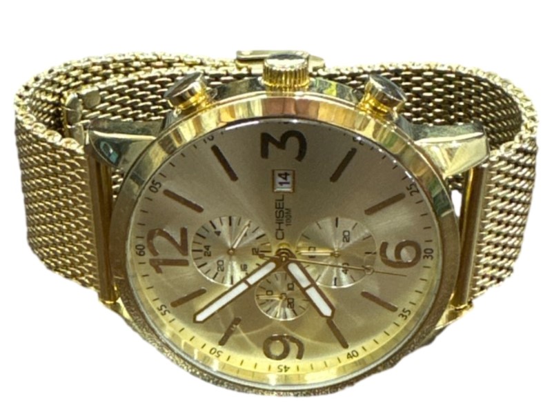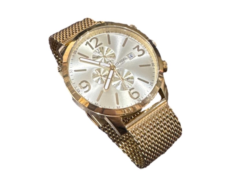This pre-owned CHISEL 5829249 dress watch features a sleek gold metal band that complements its sophisticated design. The watch's timeless aesthetic makes it a versatile accessory suitable for both formal and casual occasions. Its reliable quartz movement ensures accurate timekeeping, while the durable construction promises long-lasting use. Whether you're looking to elevate your professional attire or add a touch of refinement to your everyday style, this secondhand CHISEL watch is a smart choice.