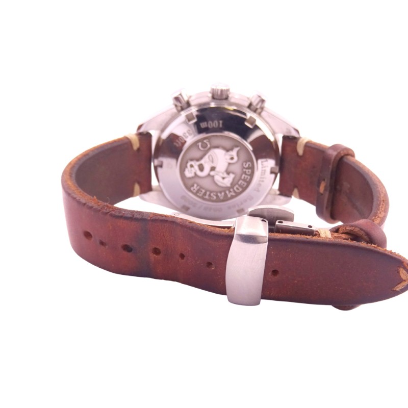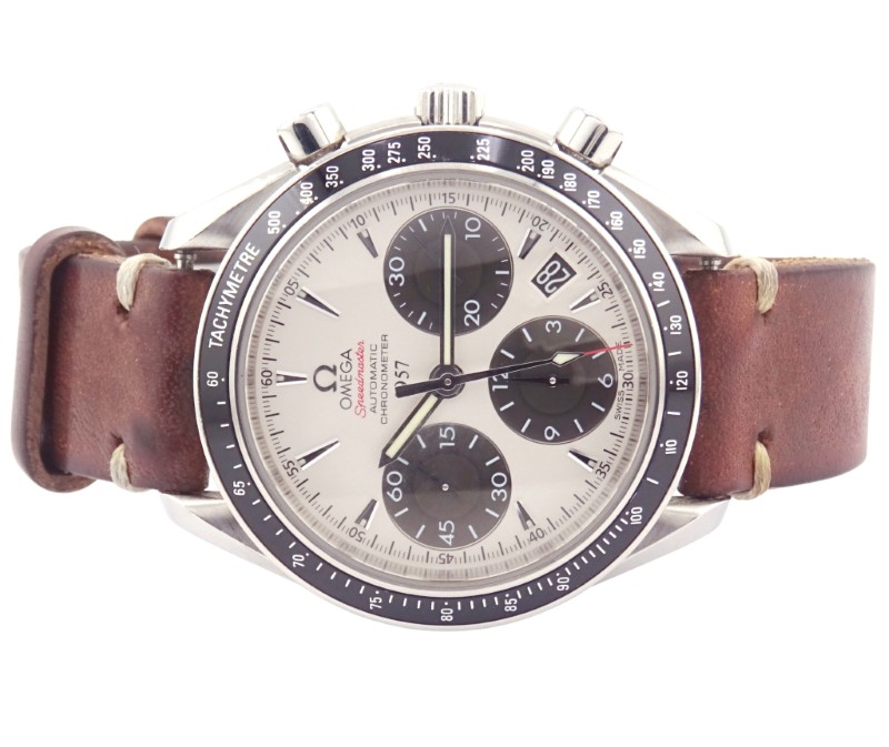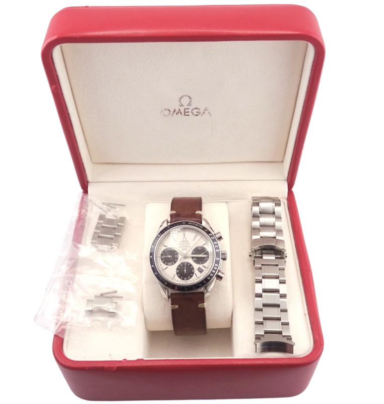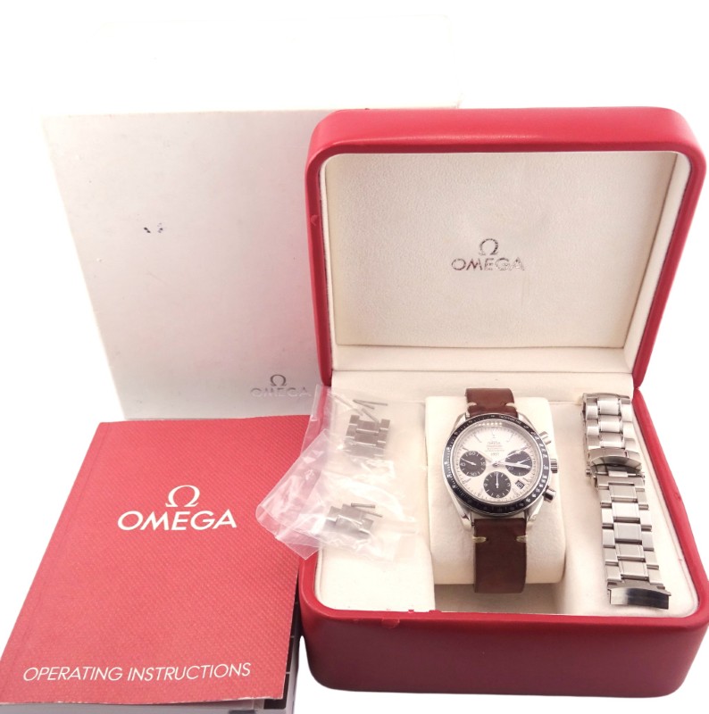 - White dial with classic Speedmaster design