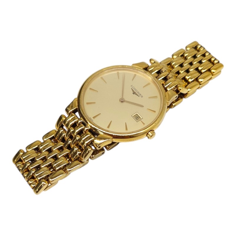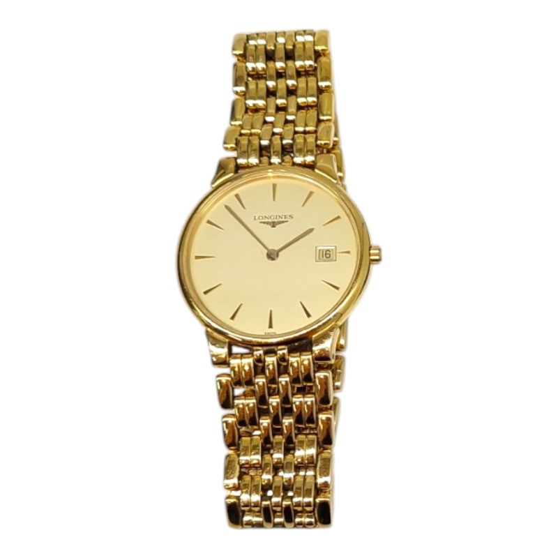 This LONGINES L5.632.2 La Grande Classique wrist watch features a classic and timeless design. The gold-toned metal band complements the gold-coloured face, creating a sophisticated and elegant look. This men's watch is a versatile accessory that can be dressed up or down to suit any occasion.