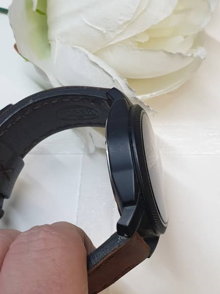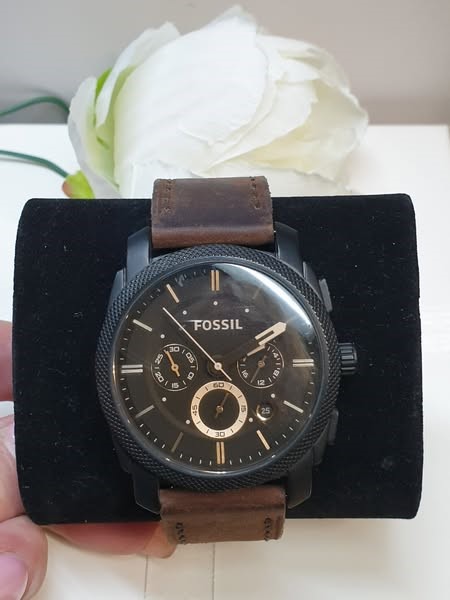 This classic FOSSIL FS4656 wrist watch features a timeless circular face with a brown leather band. The glass face displays the time through elegant strokes, offering a sophisticated and minimalist design. Crafted with high-quality materials, this men's watch boasts a brown face and band, making it a versatile accessory that can be dressed up or down. While the battery is currently flat, the watch comes packaged in its original box, ensuring a like-new condition.