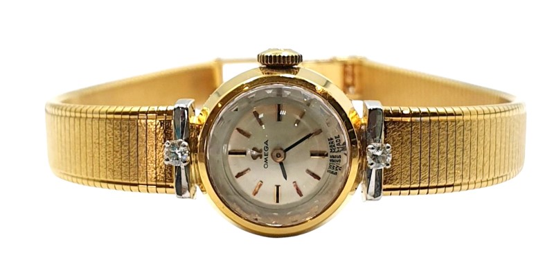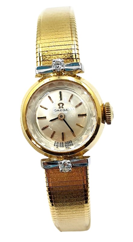 Take home a piece of vintage timekeeping glamour with this 18ct yellow gold Omega watch with diamonds.