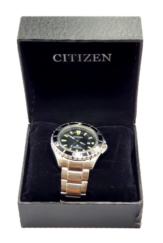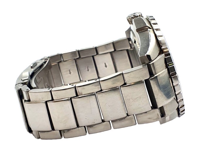 Watch has minor marks and wear around typical contact points – case, bezel, bracelet, clasp – but otherwise is in good condition. Comes in original case.