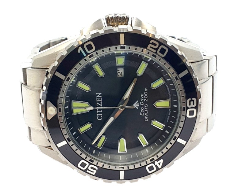 -Black stainless steel unidirectional rotating bezel with dive markers