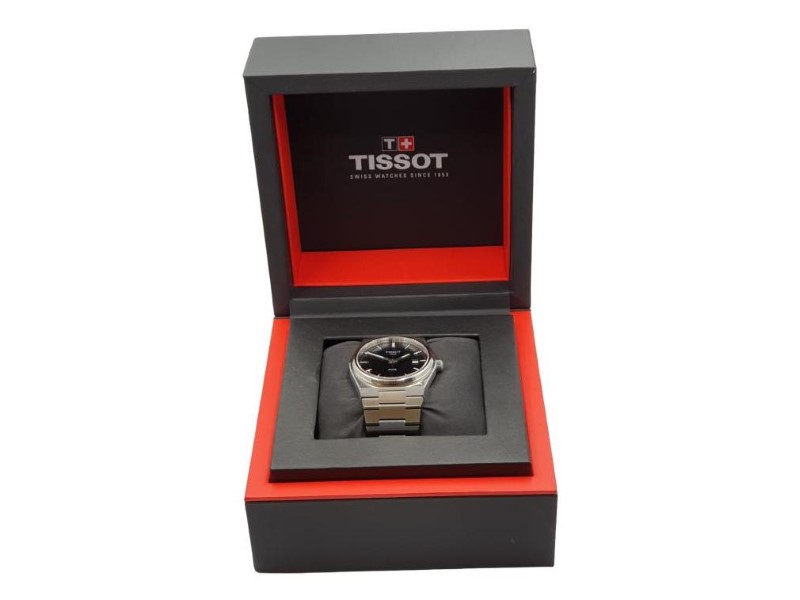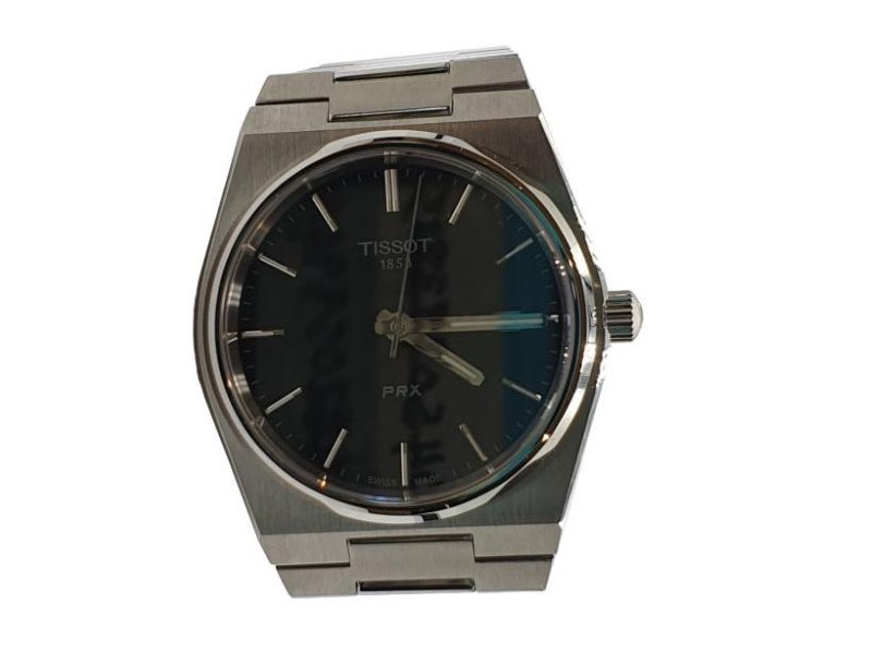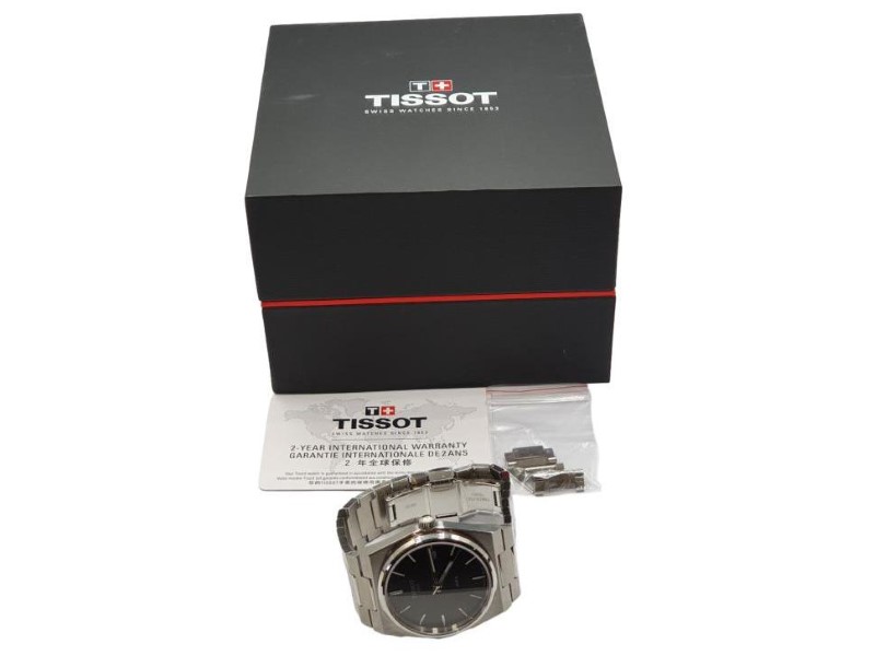 This TISSOT PRX dress watch is a sophisticated and stylish timepiece that exudes timeless elegance. Crafted with a sleek silver band, it is designed to complement a variety of formal and casual attire, making it a versatile addition to any wardrobe. The classic design features a clean dial and a slim profile, creating a refined and sophisticated look that is perfect for the modern gentleman. With the included box, manuals, and spare links, this pre-owned watch is ready to be enjoyed for years to come.