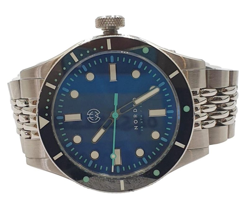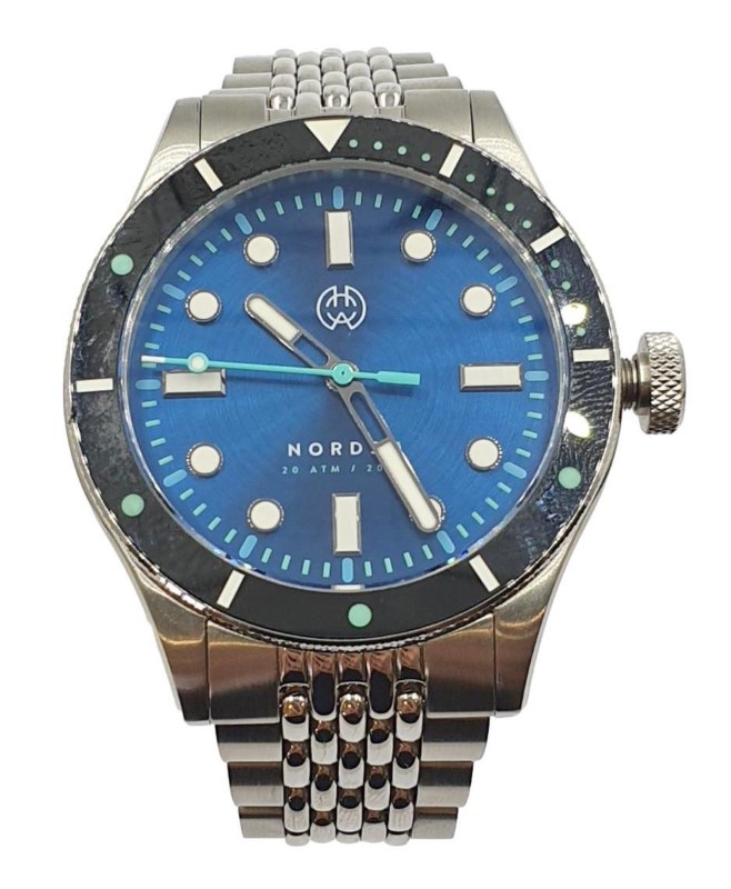 This stunning Henry Archer NOR-240 watch boasts a premium 9039 automatic movement and a sleek, sophisticated design. The 40mm case features a striking horizon blue sapphire crystal face, complemented by a durable stainless steel silver band. The 20mm strap provides a comfortable and stylish fit for any occasion. Crafted with precision and attention to detail, this dress watch is a timeless accessory that will elevate your style.