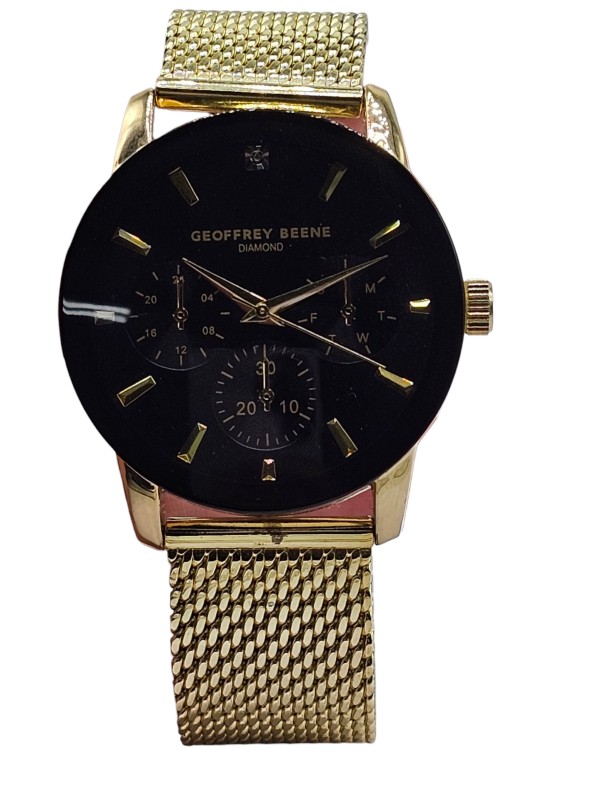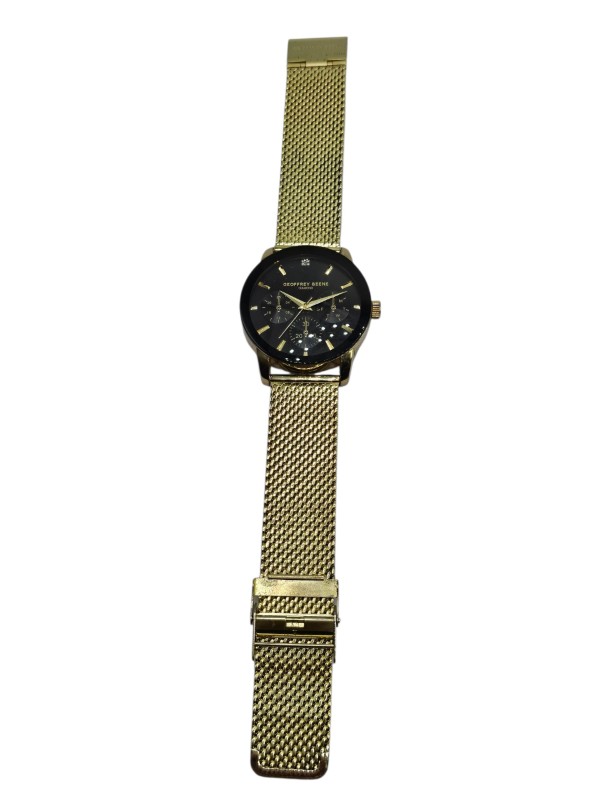 This classic GEOFFREY BEENE watch features a genuine diamond-accented mesh bracelet, adding a touch of sophisticated style to any outfit. The sleek, stainless steel case and minimalist dial provide a timeless look that seamlessly transitions from day to night. Whether dressing up for a special occasion or keeping it casual, this versatile timepiece is a must-have accessory.