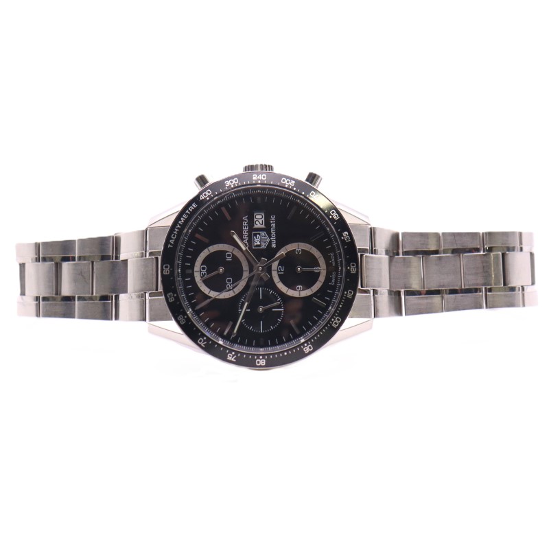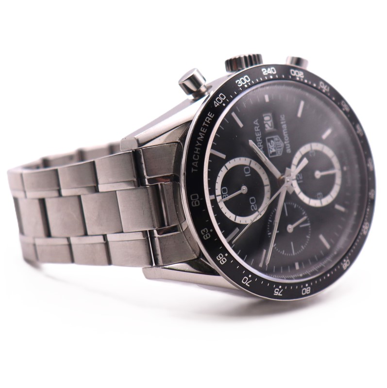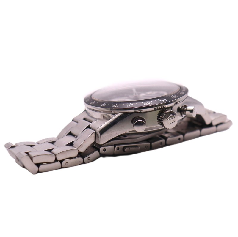 This classic TAG HEUER CARRERA AUTOMATIC CV2010 watch features a sleek silver metal band and a stylish black metal face. The circular face design and durable metal construction make this a sophisticated and reliable timepiece. With its automatic movement, this watch requires no battery and will continue to keep accurate time as long as it is worn regularly. The robust metal build ensures this watch can withstand everyday wear and tear. Whether dressing up or down, this versatile men's wrist watch is a timeless accessory.