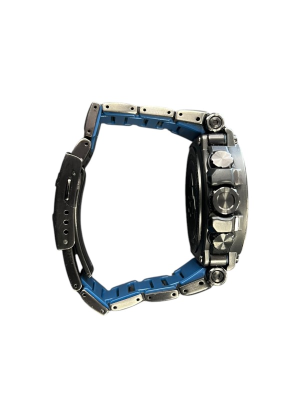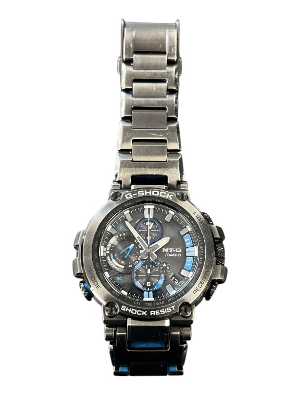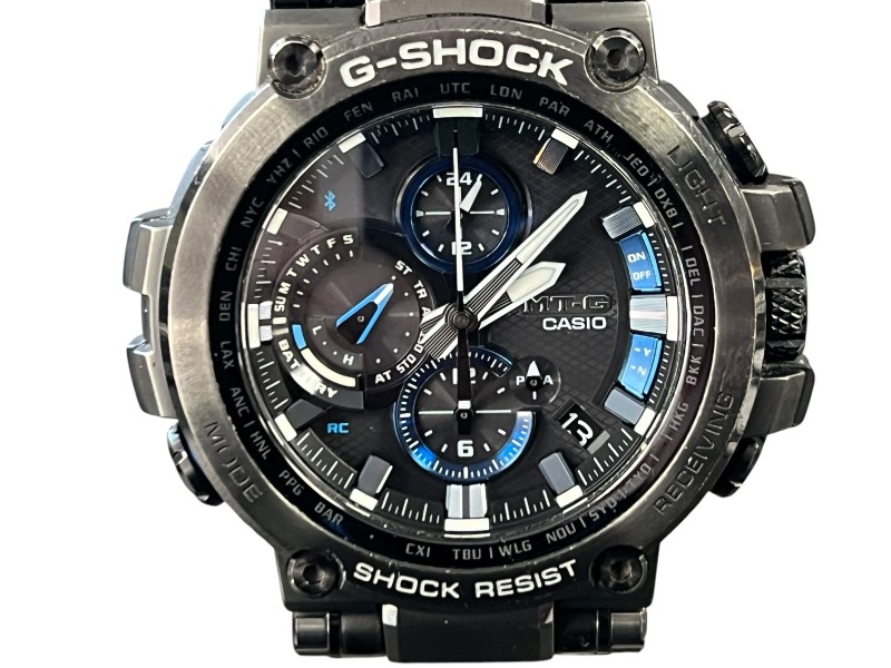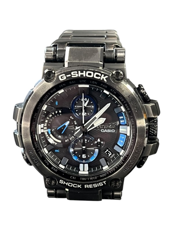 This CASIO MTG-B1000 sports watch features a sleek and durable metal band in a classic black hue. The face boasts a circular shape made of scratch-resistant sapphire crystal, showcasing a minimalist lines display. Designed for an active lifestyle, this unisex timepiece is a reliable and stylish accessory.