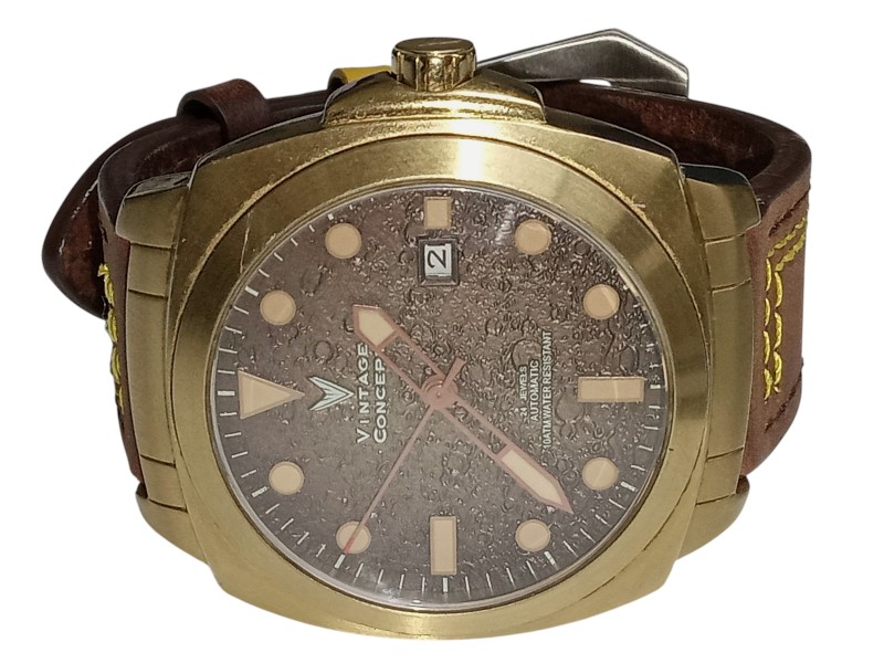 This vintage Concept Automatic watch features a classic circular face with a brown leather band, making it a versatile and timeless accessory. The face is crafted from durable sapphire crystal and displays the time using points, providing a sophisticated and minimalist aesthetic. The automatic movement, powered by a 9015 Myota Co Japan mechanism, ensures reliable and consistent timekeeping, while the 10ATM water resistance rating makes this watch suitable for everyday wear. With its 14 jewels and unisex design, this vintage-inspired timepiece is a stylish and practical choice for any occasion.
