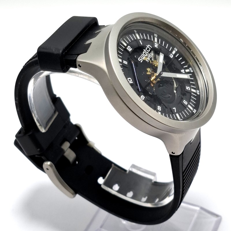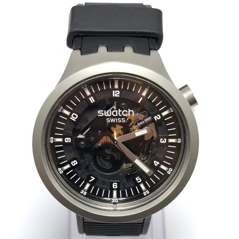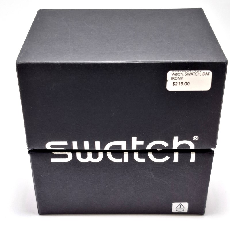 This SWATCH DARK IRONY sports watch is a stylish and functional timepiece that will complement any casual or active outfit. Crafted with a durable stainless steel case and a comfortable silicone strap, this watch is designed to withstand the demands of everyday wear. The bold, dark-coloured dial features clear, easy-to-read numerals and hands, ensuring excellent visibility in various lighting conditions. The reliable quartz movement ensures accurate timekeeping, while the water-resistant construction allows for worry-free use during light water activities.