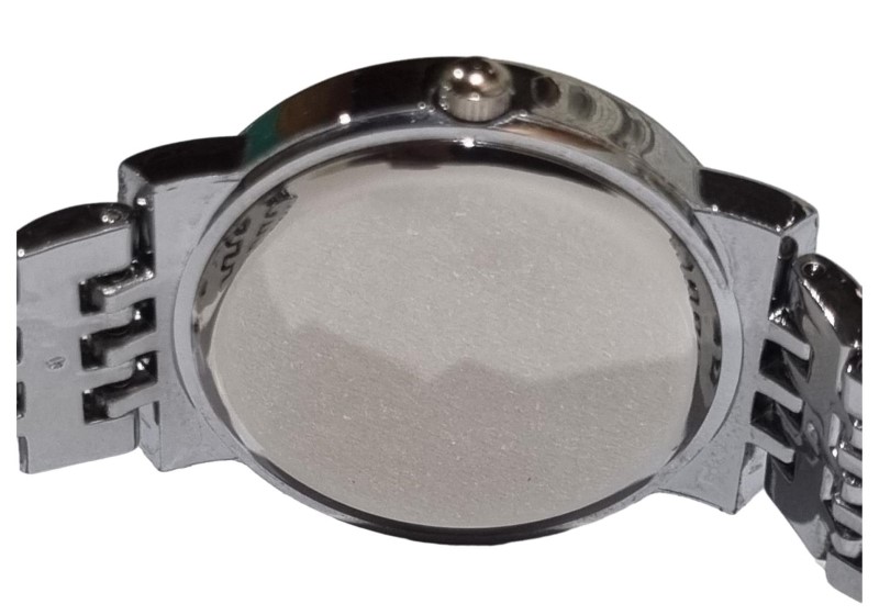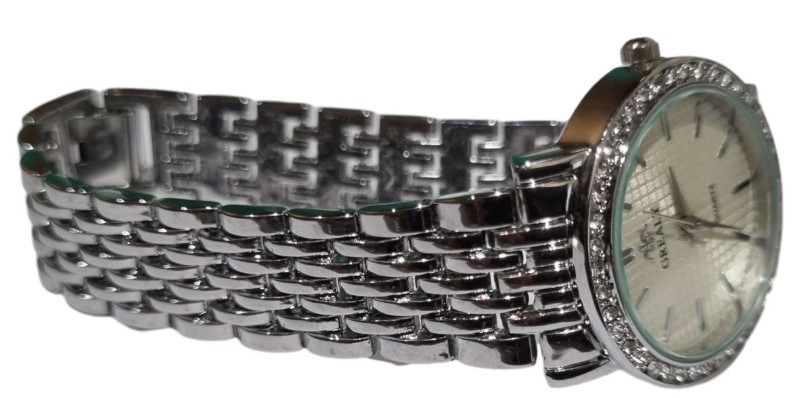 - Silver metal band for a polished, sophisticated look