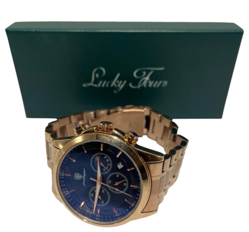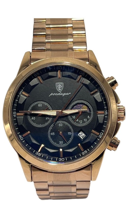 This classic Lucky Four 3ATMP928 dress watch features a sleek black metal face with a circular design, complemented by a sturdy brown metal band. The robust construction and timeless aesthetic make this a versatile accessory suitable for a range of formal and casual occasions. The watch's reliable quartz movement ensures accurate timekeeping, while the compact size and lightweight feel provide all-day comfort and convenience.