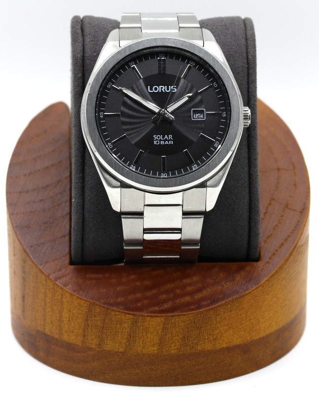 This classic LORUS AS32-X032 dress watch features a sleek silver metal band and a bold black metal face with a circular design. The timeless aesthetic makes it a versatile choice for any occasion, from the office to a night out. Its durable construction ensures long-lasting wear, while the straightforward analogue display provides easy readability. This pre-owned timepiece is a stylish and practical addition to any wardrobe.