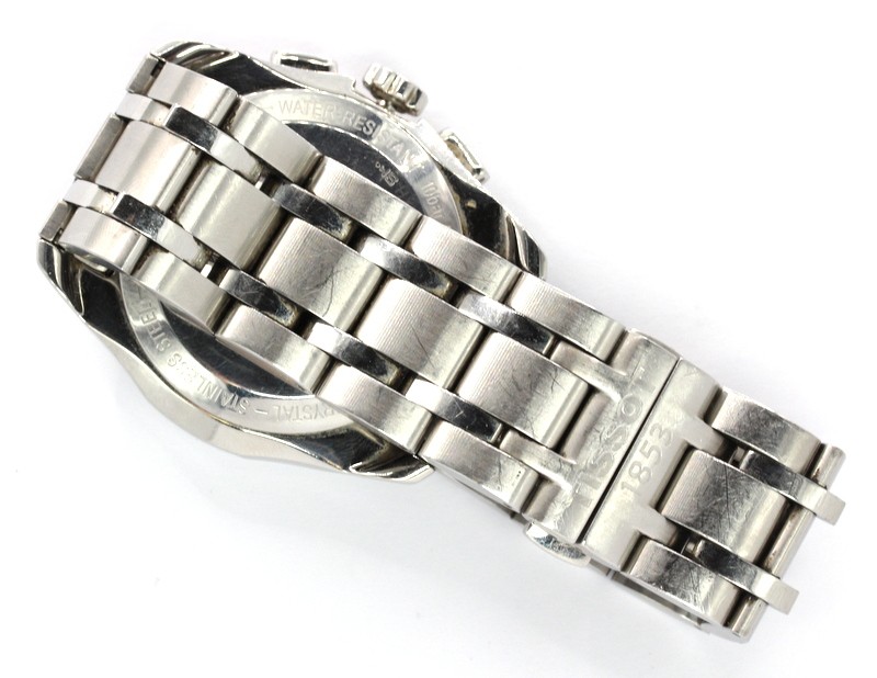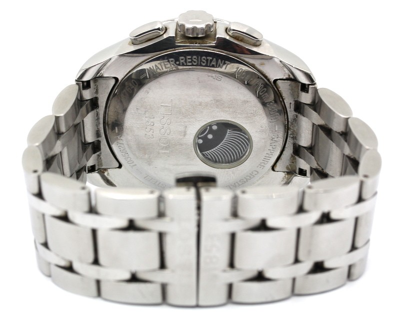 This classic TISSOT T035627A men's dress watch features a sleek silver-tone face and band, making it a versatile accessory for any occasion. The silver-toned stainless steel case and band provide a sophisticated look, while the quartz movement ensures reliable timekeeping. With a weight of 220.7 grams, this watch has a substantial yet comfortable feel on the wrist.
