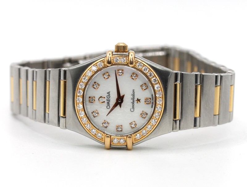 This stunning OMEGA CONSTELLATION ladies' dress watch is a timeless accessory that exudes elegance and sophistication. Crafted with a sleek silver-tone band, it seamlessly complements a variety of outfits, making it a versatile choice for both casual and formal occasions.