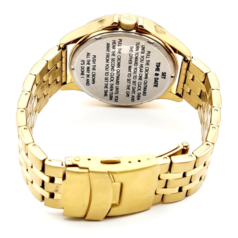 - Durable metal band in a gold finish