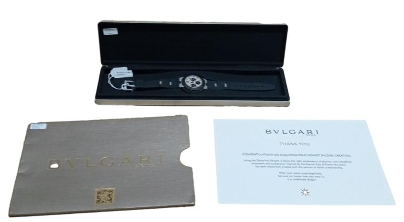 This BVLGARI BU1UQP3 dress watch features a classic circular white face with bold black numerals. The durable plastic band in a sleek black colour complements the sophisticated design, making this a versatile accessory for any occasion. The simple yet elegant aesthetic of this timepiece ensures it will seamlessly integrate into your wardrobe.