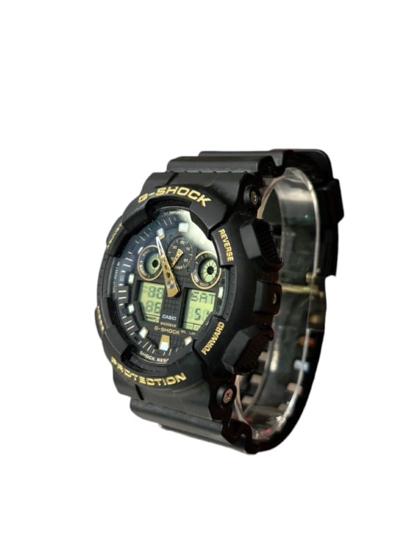 This sleek and durable CASIO G-SHOCK watch is a reliable timepiece built to withstand the demands of an active lifestyle. Featuring a robust rubber band and a scratch-resistant glass face, this digital watch offers a stylish and practical design suitable for men. The included box and tin provide a secure storage solution for this well-crafted accessory.