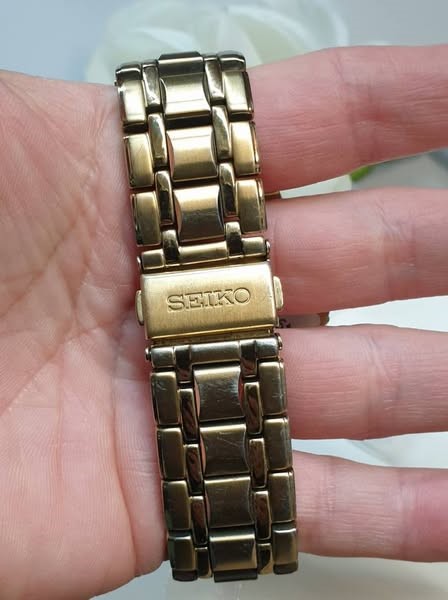 - Metal band in a fashionable gold tone for a polished, durable construction
