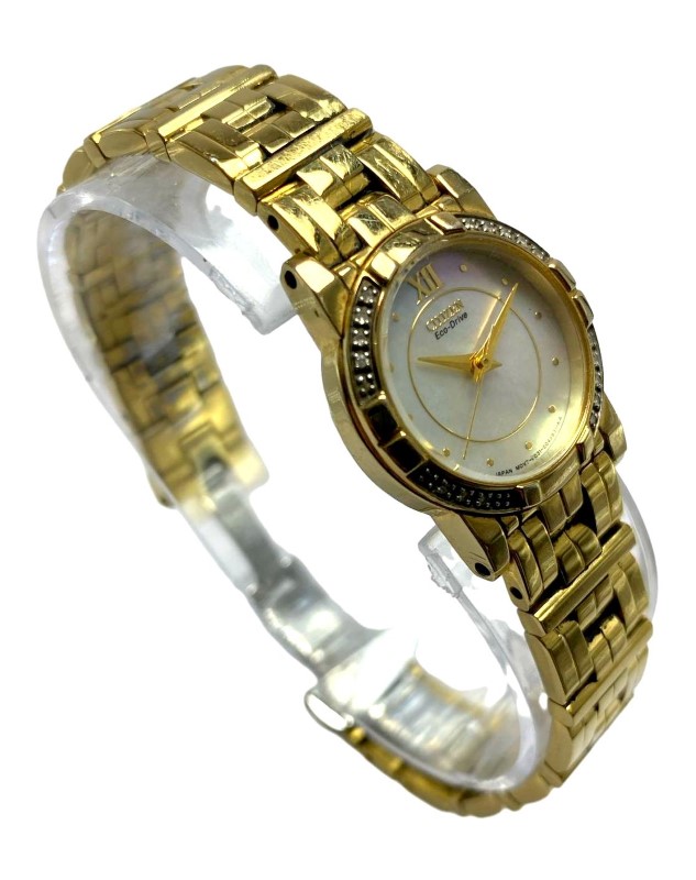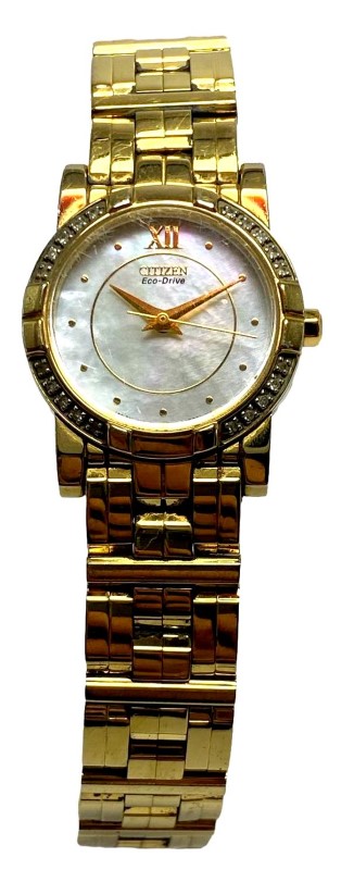 Model: Eco-Drive Elektra Gold-Tone Mop Dial Diamond Watch - E031-S027250