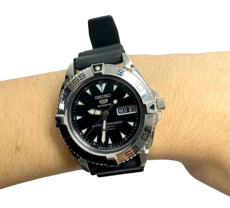 Watch has minor marks and wear around typical contact points – case, bezel, bracelet, clasp – but otherwise is in good condition and works fine.
