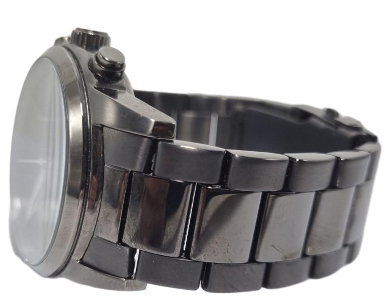 - Black metal face and band for a sophisticated look