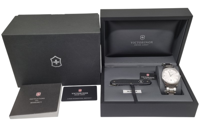241554.1 (241712.1) Chronograph Silver-Tone Watch Set With Swiss Army Knife