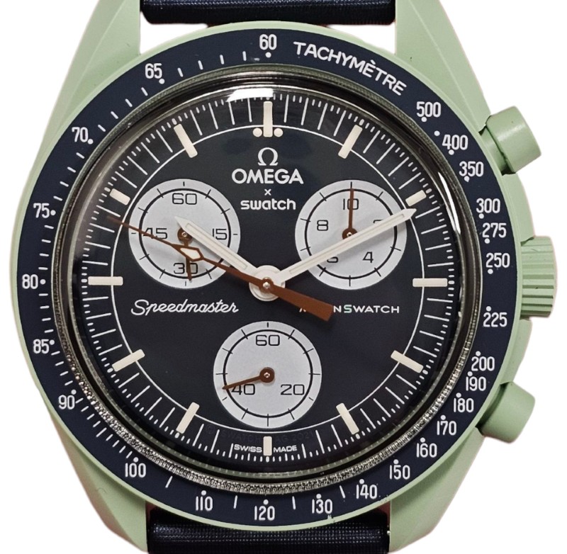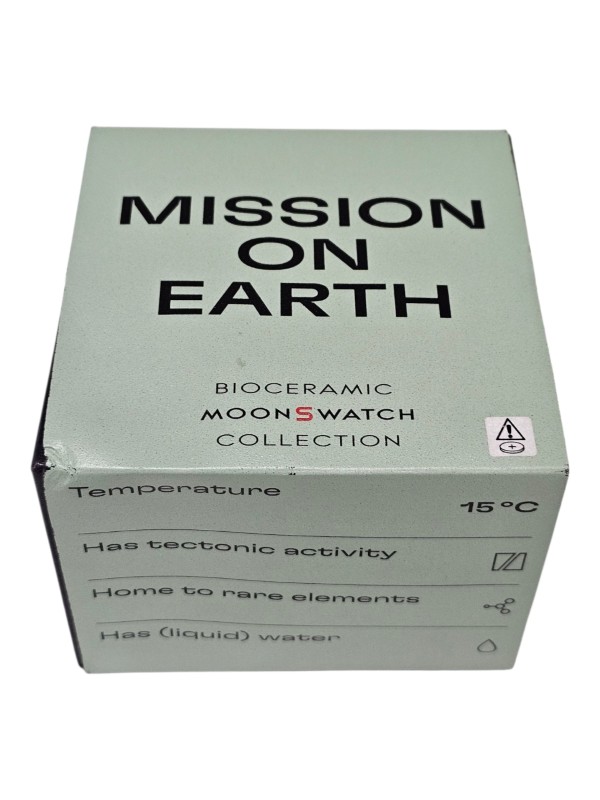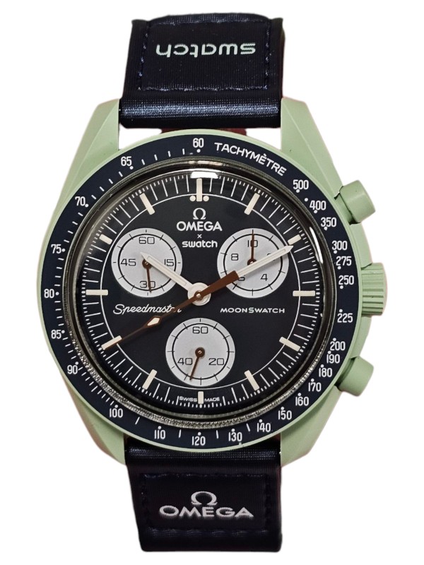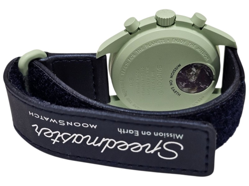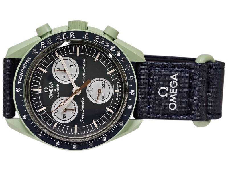 This OMEGA X SWATCH MISSION TO EARTH watch features a circular face and a blue Velcro band, making it a stylish and practical choice for the modern man. The Velcro band provides a secure and adjustable fit, ensuring all-day comfort. Whether you're dressing up or down, this versatile timepiece will complement your look with its sleek and contemporary design.