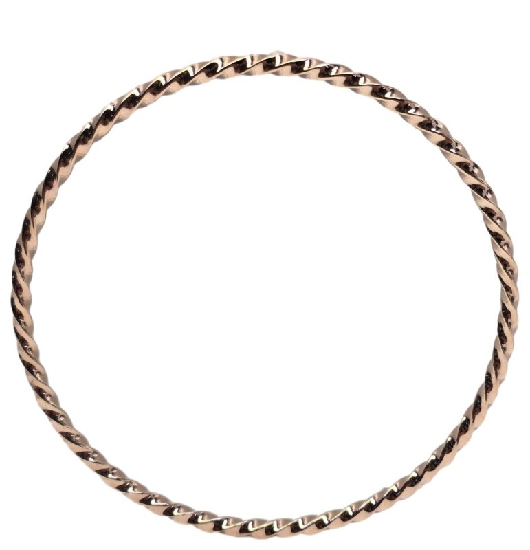 This 9 karat rose gold bangle is a classic ladies' accessory. Crafted without any hallmark, the smooth, curved design features a weight of 11.32 grams, making it a substantial yet comfortable piece to wear. The rose gold material adds a warm, feminine touch to this simple yet elegant bracelet sub-type.