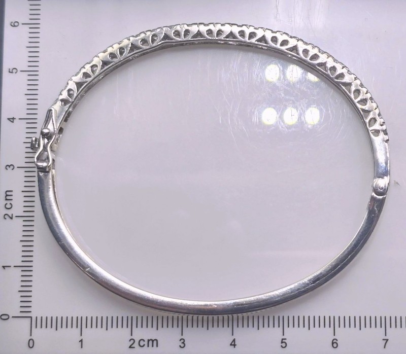 This elegant silver bangle features a classic solid design, perfect for any occasion. Crafted from durable silver, this bracelet has a length of 65cm and a width of 55mm, weighing a substantial 13.51 grams. The simple yet stylish silver bangle is a versatile accessory that can be dressed up or down to suit your personal style. All sizes and measurements are approximate.