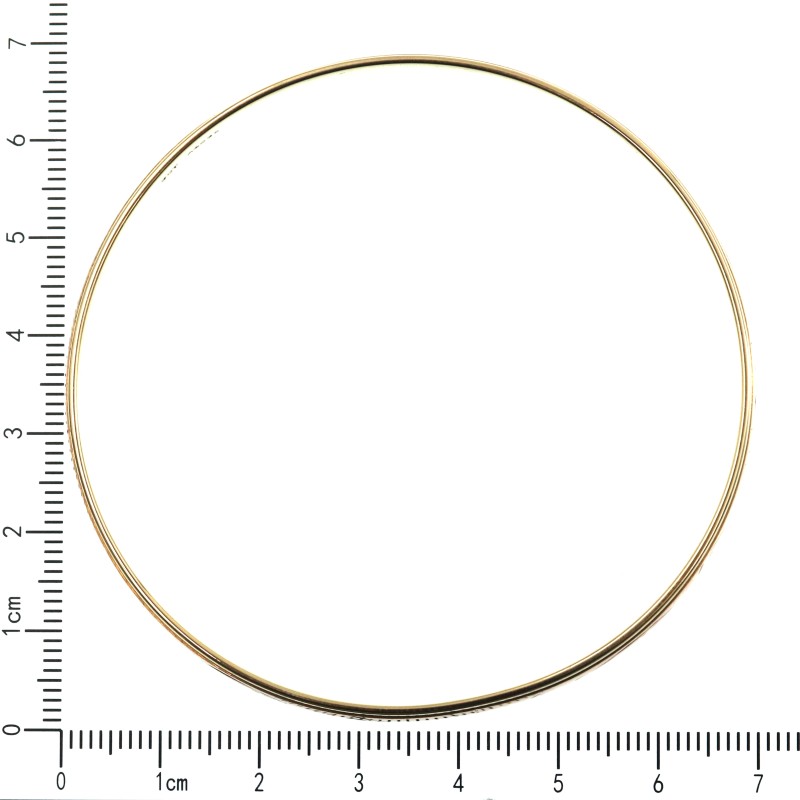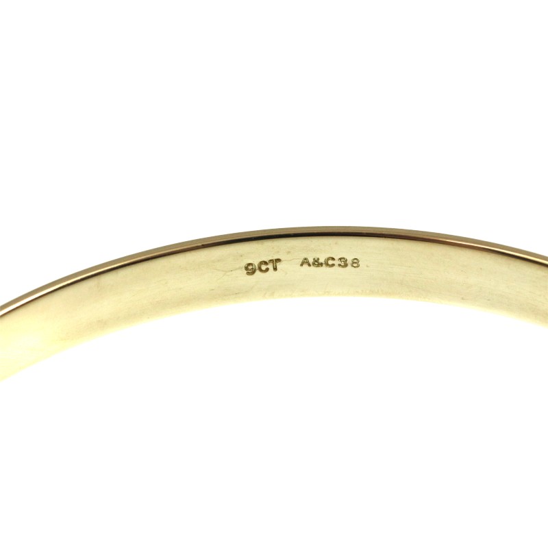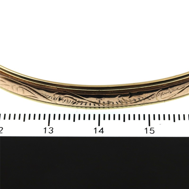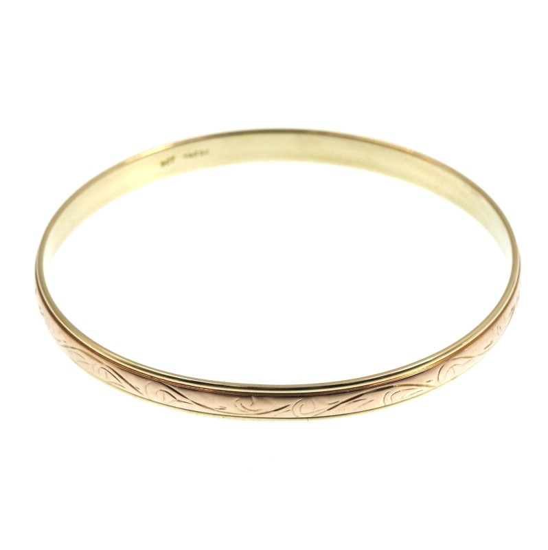 Elegant and sophisticated, this 9ct Two Tone Gold Bangle features a captivating blend of yellow and rose gold. Crafted with a hallmark of .375, this ladies' bangle showcases a round shape and a weight of 18.2 grams, exuding a timeless and refined aesthetic. The 9ct engraving adds a touch of understated luxury, making this bangle a versatile accessory for any occasion. All sizes and measurements are approximate.