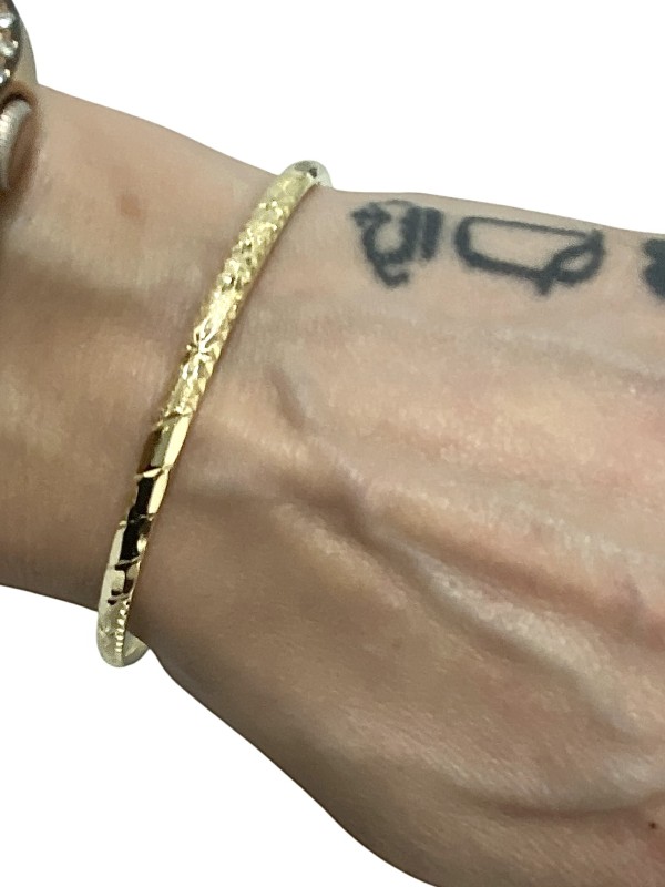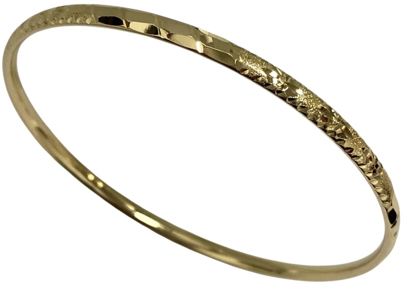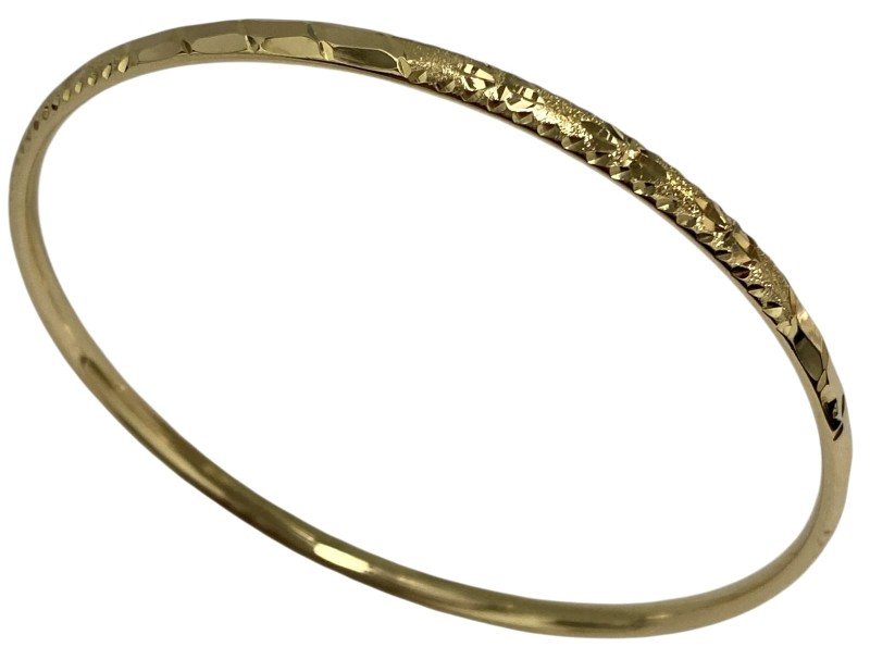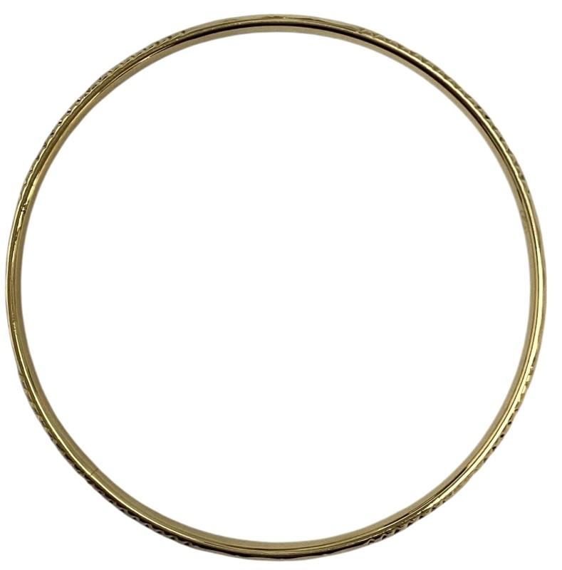 This stunning 18ct yellow gold bangle has a diameter of 70mm and is 4mm wide.