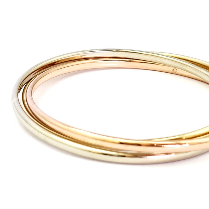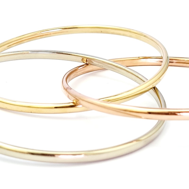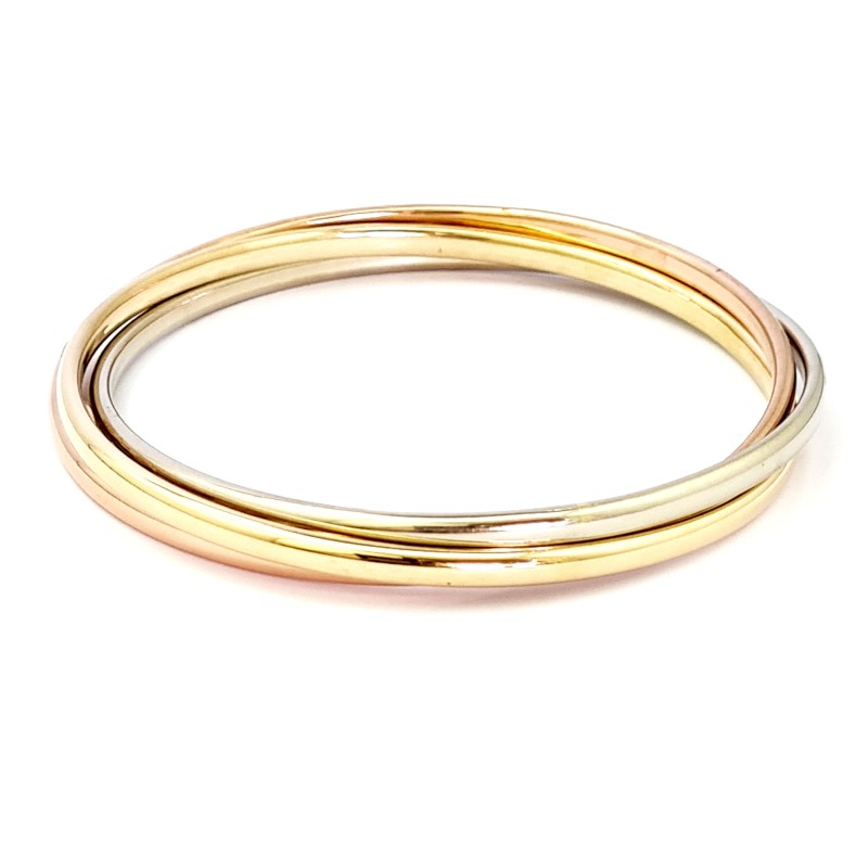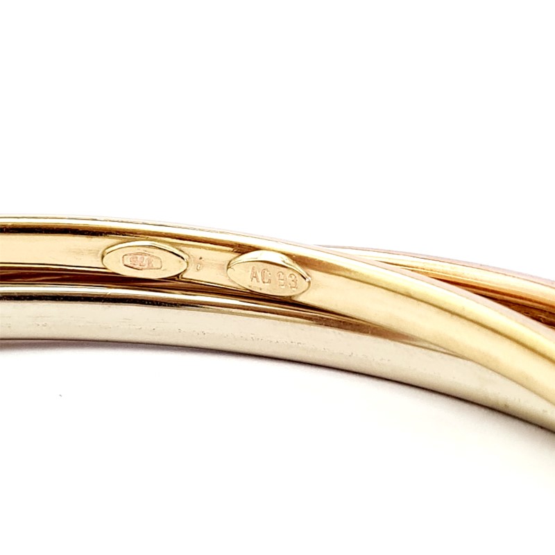 9CT GOLD 3 TONE HOLLOW RUSSIAN BANGLE