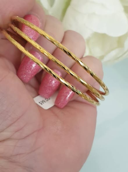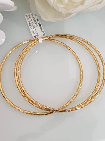 This set of three 925 silver gold-plated bangles offers a timeless and versatile accessory for any style. Crafted from sterling silver with a 925 hallmark, the bangles measure 6cm in length and 0.1cm in width, weighing a total of 14.85 grams. The engraved 925 gold-plated finish adds a touch of sophistication, making this set a unisex piece suitable for any occasion. All sizes and measurements are approximate.