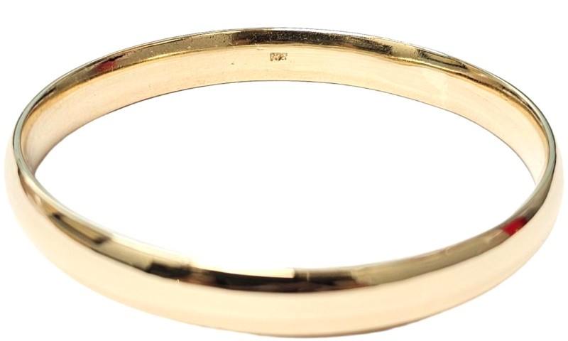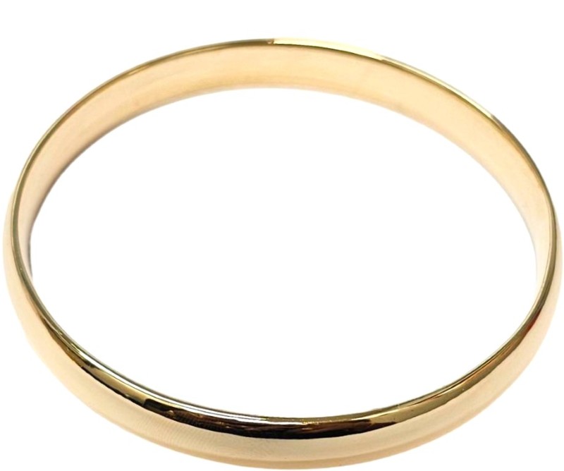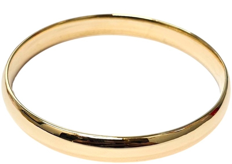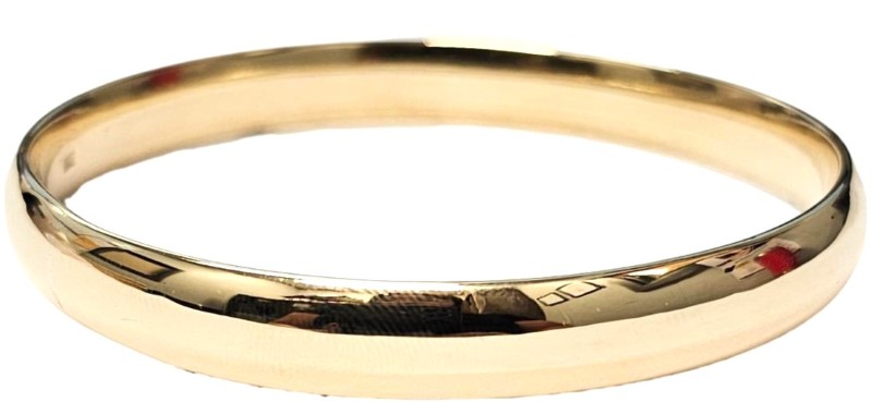 This elegant 9 Karat Yellow Gold bangle is a classic ladies' accessory. The solid plain design features subtle engraving details, making it a versatile piece that can be worn for any occasion. Weighing a substantial 48.69 grams, this Yellow Gold bracelet is a timeless addition to any jewellery collection. All sizes and measurements are approximate.