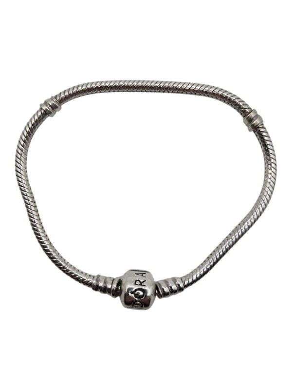 This is a Silver Pandora Snake Bracelet weighing 13.50g. The bracelet features a snake shape design and is stamped with the 925 hallmark, indicating it is made from sterling silver.