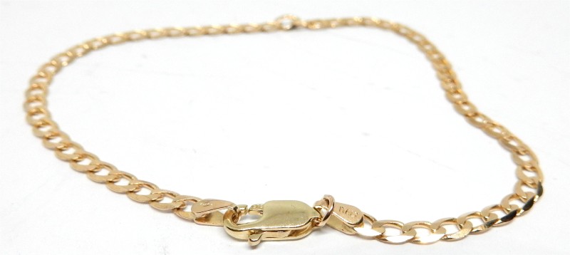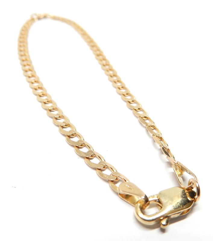 This 9ct yellow gold curb link bracelet is a classic and timeless piece. Crafted with attention to detail, the bracelet features a link design that measures 18.5cm in length and 0.3cm in width, weighing 2.17g. The warm tones of the 9ct yellow gold create a refined and sophisticated aesthetic, making this bracelet a versatile accessory that can be worn for a variety of occasions. All sizes and measurements are approximate.