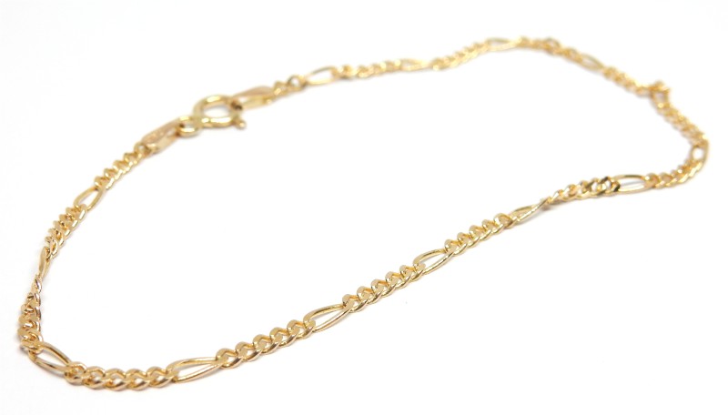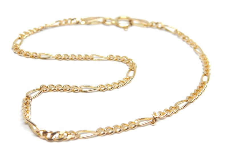 This 9ct yellow gold figaro link bracelet is a classic and versatile accessory. Crafted from durable and lustrous yellow gold, the figaro link design features a consistent pattern of alternating round and oval links. Measuring 18cm in length and weighing a comfortable 1.25 grams, this bracelet is an elegant and practical addition to any jewellery collection. All sizes and measurements are approximate.