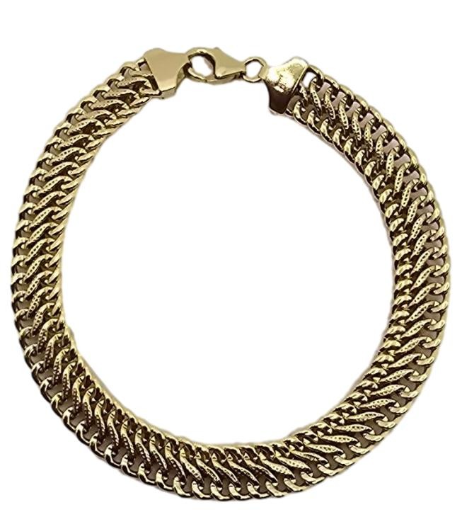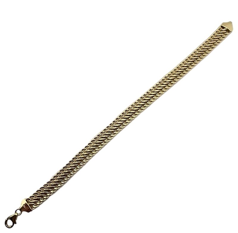 This delicate 9-karat yellow gold bracelet is a timeless accessory. Measuring 19.5cm in length and weighing 12.85g, it features a silver-filled construction that adds durability and shine. The bracelet's simple yet elegant design makes it a versatile choice, suitable for both casual and formal occasions. All sizes and measurements are approximate.