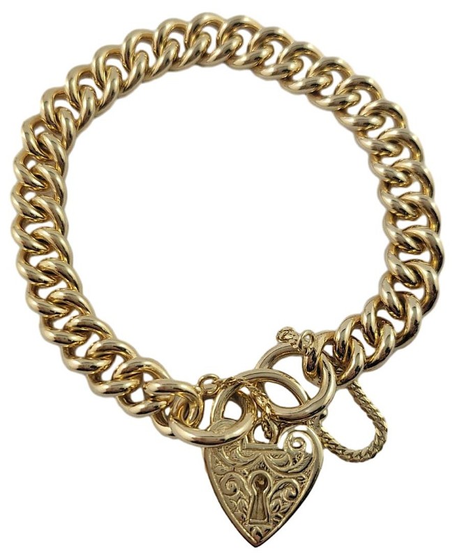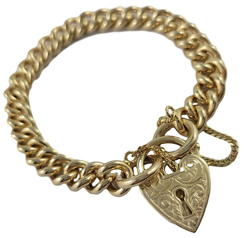 This 9 Karat Yellow Gold Bracelet features a classic curb link design accented with a padlock charm.
