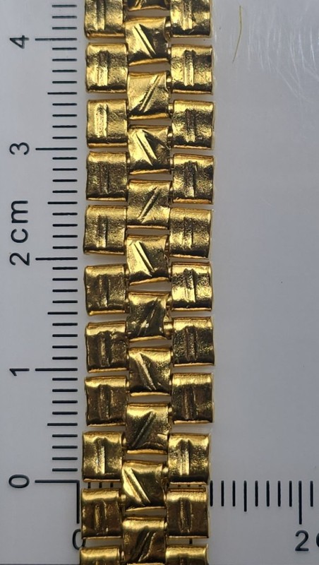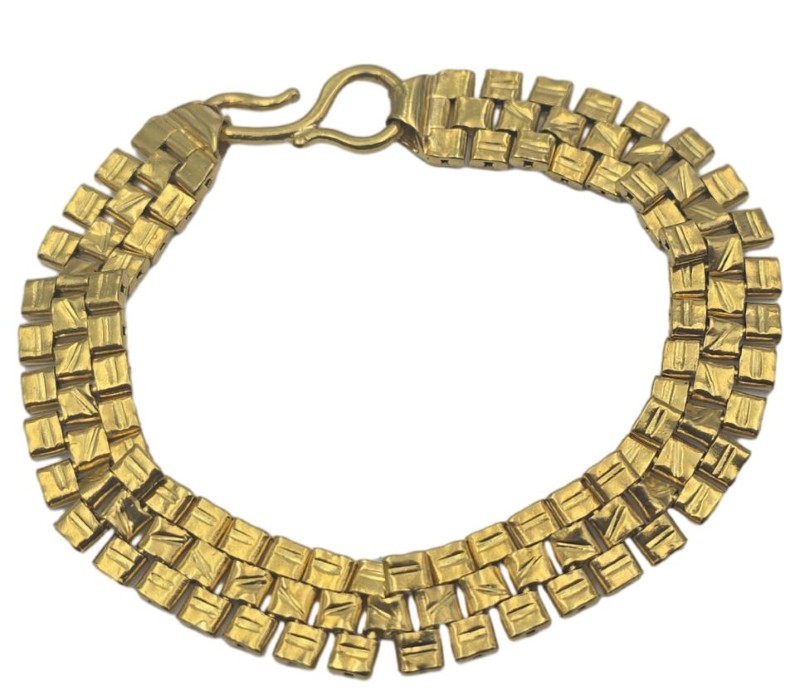 This stunning 18K yellow gold bracelet exudes timeless sophistication. Crafted from solid yellow gold, this unisex piece measures 21cm in length and weighs a substantial 51.13g. The classic bracelet design makes it a versatile accessory, suitable for any occasion. With its clean, streamlined shape, this piece offers a sophisticated and refined style. All sizes and measurements are approximate.