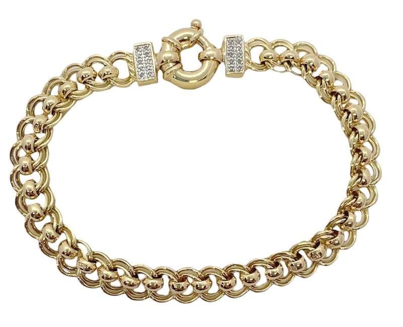 9ct Roller Curb Bracelet With Diamond Bolt Clasp