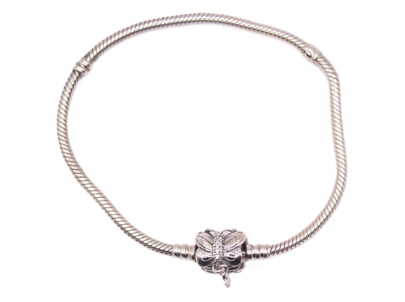 Make / Model: Pandora Snake Chain Bracelet With Decorative Clasp In Butterfly Shape With Cz's