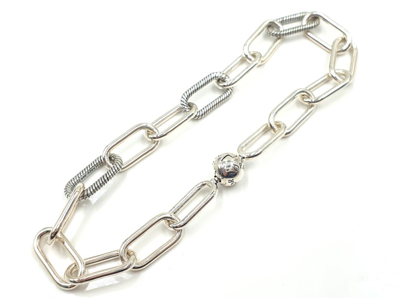 This lovely 925 silver bracelet from the renowned Pandora brand features the engraved letters "ALE" as a unique design element. Measuring 22cm in length and weighing a substantial 18.52g, this bracelet has a sleek, Other shape that elegantly adorns the wrist. Crafted from high-quality silver, this versatile accessory can be worn by ladies for a touch of understated sophistication. All sizes and measurements are approximate.