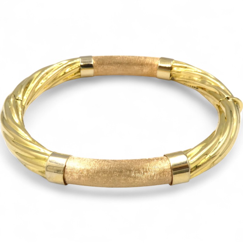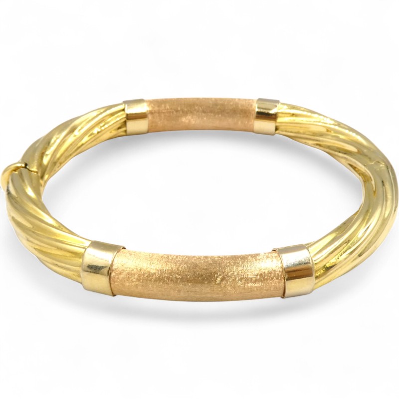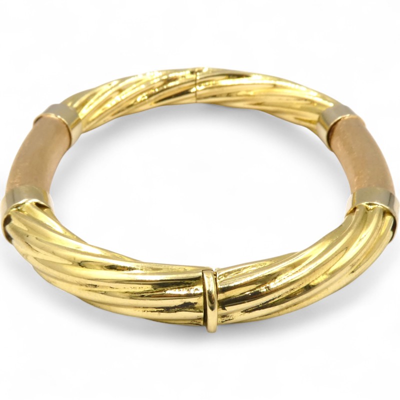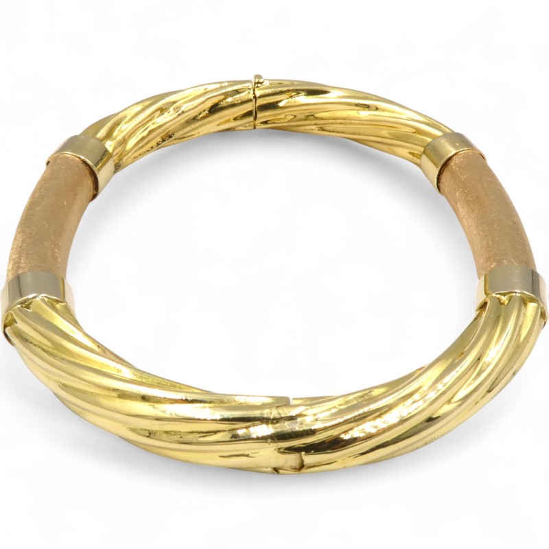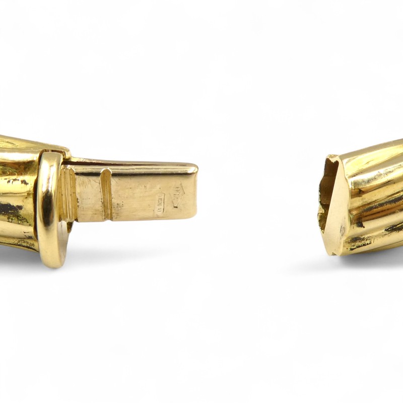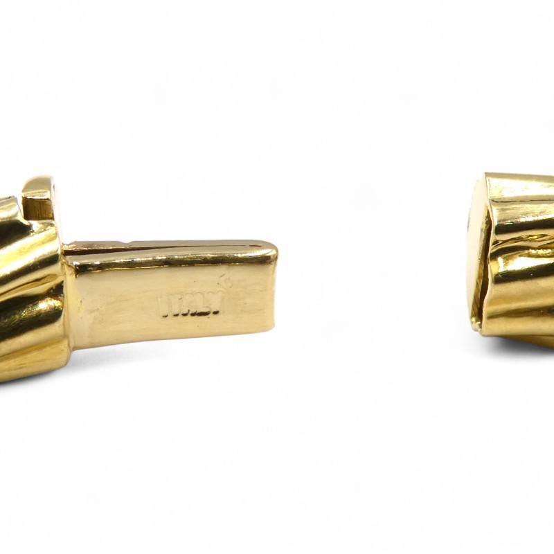 This elegant 18K yellow gold ladies' bangle is a classic accessory, weighing a substantial 21.65g. Featuring a solid construction and a hallmark of .750, this bracelet measures 6cm in length and 0.8cm in width, showcasing the warm tones of the precious metal. The engraved details "IS20 VI 750 ITALY" add an additional touch of refinement. Whether worn alone or layered with other jewellery, this timeless bangle is a versatile and sophisticated choice.
