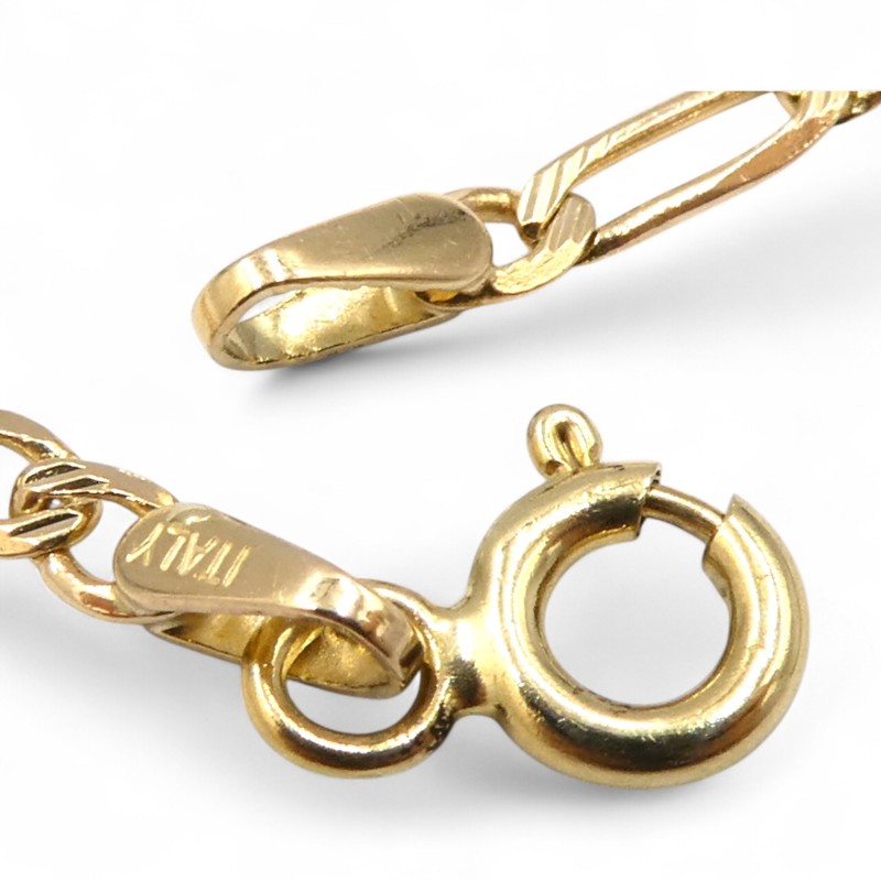 This charming 9ct yellow gold bracelet offers a timeless and refined accessory for the modern lady. Crafted with a classic link design, the bracelet weighs a delicate 1.44g and measures a versatile 19.5cm in length. The hallmarked 9ct yellow gold material provides a warm, lustrous finish, while the engraved 'JP4 ITALY 375' detailing adds a touch of authenticity. Suitable for everyday wear, this bracelet is a stylish and versatile addition to any jewellery collection. All sizes and measurements are approximate.