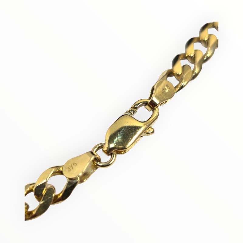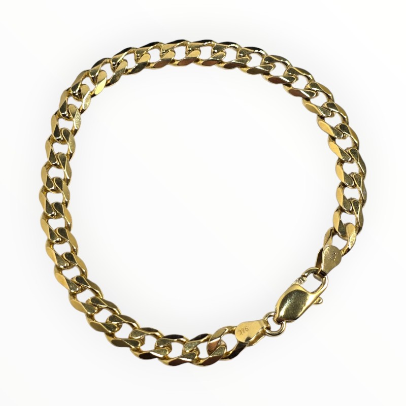 This 9 karat yellow gold bracelet features a classic design that will suit any occasion. The hallmark of .375 indicates the bracelet is made from 9 karat gold. Measuring 22 cm in length and weighing 15.3 grams, this ladies bracelet is a versatile accessory. All sizes and measurements are approximate.