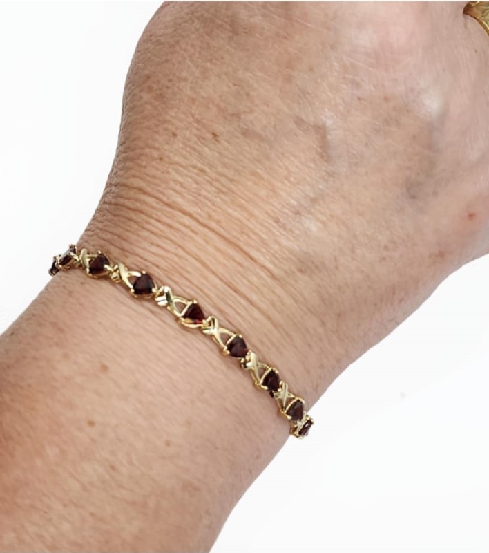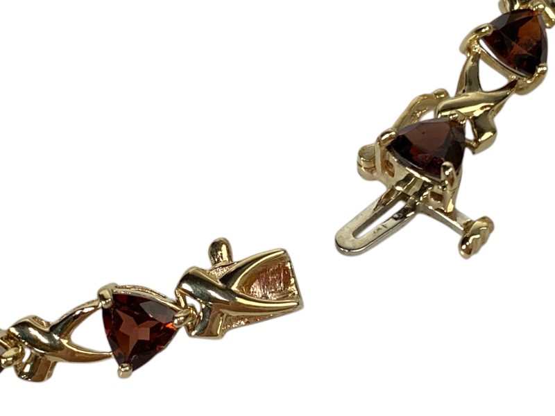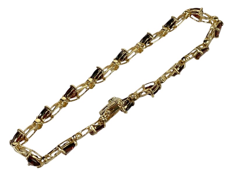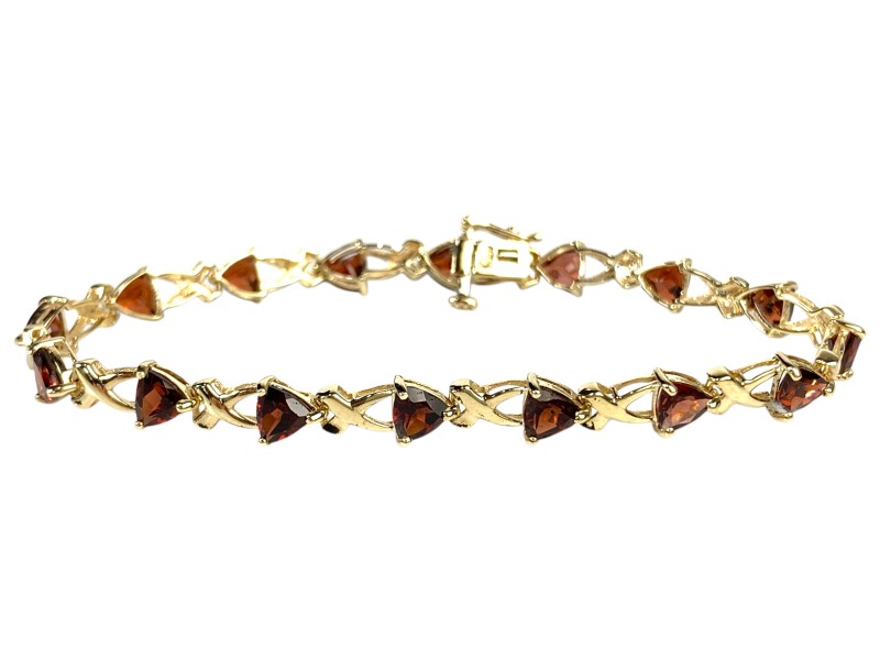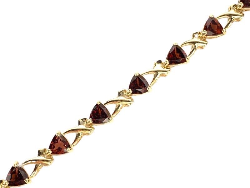 Description: 10CT YELLOW GOLD AND TRILLIANT CUT GARNET BRACELET - 7.68CT