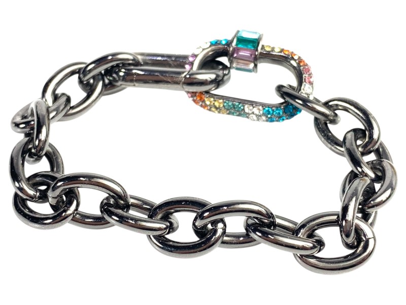 Description: MIMCO BLACK PLATED OVER METAL WITH MULTI COLOURED CRTSTALS
